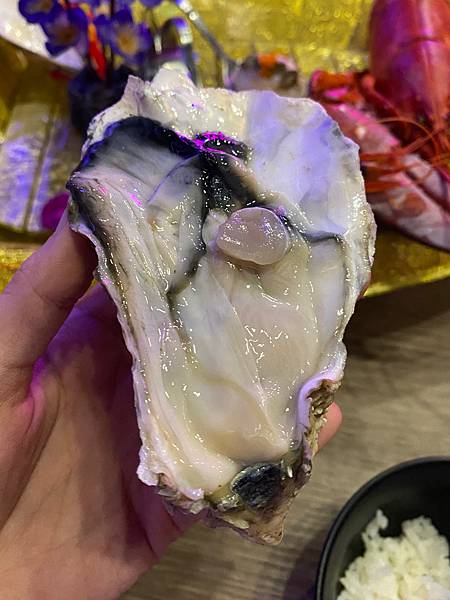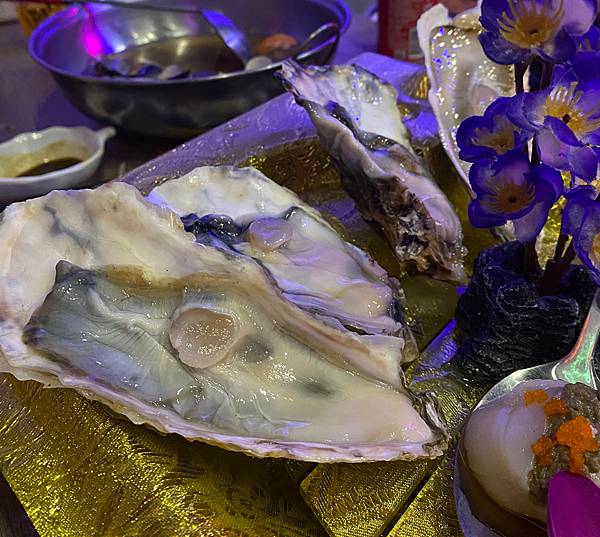 最近有活動,google五星評論10個字以上,贈送生蠔1顆or九孔2顆,如果有點巨大龍船的話會有4顆生蠔,我們的話是一半的人選九孔,一半的人選生蠔,龍船上的生豪給選九孔的人吃,選九孔的人分一顆給選生蠔的人。九孔肉扭一下就起來了,味道中規中矩。