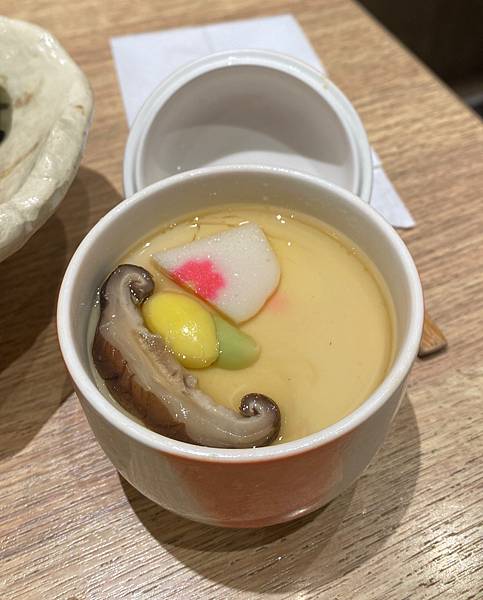 這個套餐有附茶碗蒸、甜點和飲料,茶碗蒸吃起來蠻特別的,好像是多了醬油的味道。
