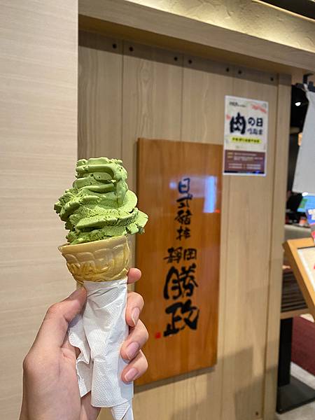 餐後有附一份甜點,結帳的時候才發現,於是改成外帶,它們家的抹茶冰淇淋帶有些許苦味,整體不會到太甜,建議盡快吃完或內用,因為它融化的超快!